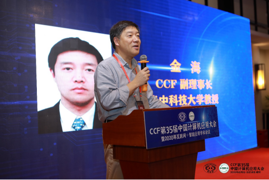 本次大会共有6场大会特邀报告,6场论坛特邀报告,4场线上论坛。12位专家和4位论坛主席分别围绕“区块链”、“支撑智能应用的基础软件”、“人工智能”、“大数据”、“机器学习”、“网络通信及安全”等前沿技术在各个领域的应用进行报告,共同探讨计算机应用的发展与未来。金海做了题为《从分布式系统的发展看区块链技术面临的挑战》的特邀报告,他从分布式系统技术的发展演进探讨区块链作为分布式系统新形态所带来的新挑战,同时也展望了区块链技术发展的未来走向。北京大学的谢涛做了题为《支撑智能应用的基础软件更新》的特邀报告,他从软件工程和系统软件视角来讨论支撑智能应用的基础软件更新。此外清华大学的刘云浩做了《智能+与工业互联网》、西安电子科技大学的胡瑞敏做了《大数据时代安全演进与网络空间社会安全感知计算》、中国科学院信息工程研究所的熊刚做了《大数据网络行为分析:挑战与探索》、阿里安全知识服务团队的黄龙涛做了《安全和AI技术的实践与思考》的精彩报告;在智慧农林和智慧交通的大会论坛上,中国林科院资源信息所张旭、东北林业大学的景维鹏、华中农业大学的李国良、北京交通大学的李浥东、国家智能网联汽车质量监督检验中心(湖北)的周正、西安理工大学的魏嵬等六位专家也分别做了报告。