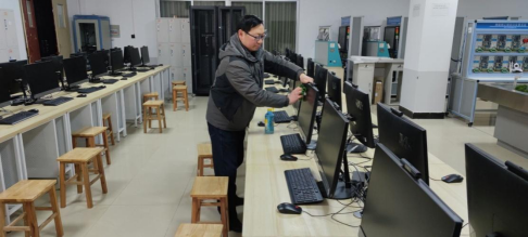 计算机实验教学中心负责人检查实验设备