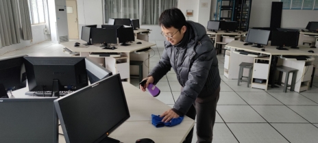 教工通讯员 黄健)为了做好开学准备工作,加强安全管理,保障正常的教学科研秩序。从2月17日新年第一天上班开始,计算机实验教学中心全体教师按照疫情防控和学校开学要求,对所有实验室进行了卫生大扫除和环境消杀,并按照实验教学的要求调试软、硬件系统,确保新学期各项实验教学工作正常开展。