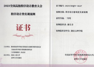 康长青老师设计的实训案例作品《程序设计游戏化实训案例》荣获全国二等奖。