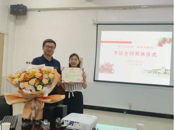 举行罗颖教师荣休仪式。学院院长杭波为罗颖老师颁发荣休证书。