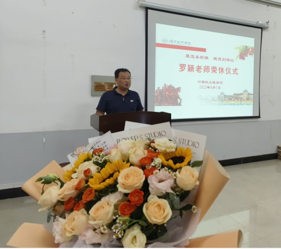 学院党委书记曹德勇介绍了罗颖老师的工作经历。曹德勇说,罗颖老师从教28年,她热爱教育事业,爱岗敬业、勤勤恳恳,为学院和学生奉献了最美好的青春和全部的智慧。曹德勇代表学院对罗颖老师的辛勤付出表示感谢,号召学院教师学习罗颖老师的优秀品质,争做“四有”好老师,祝愿罗老师身体健康、生活美满,常回学院看看。
