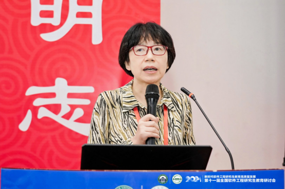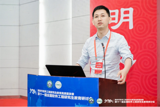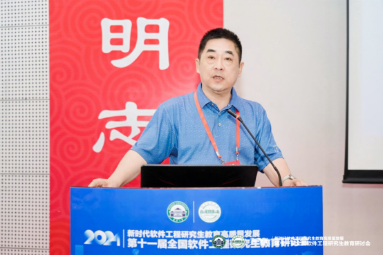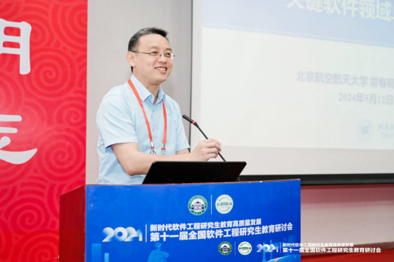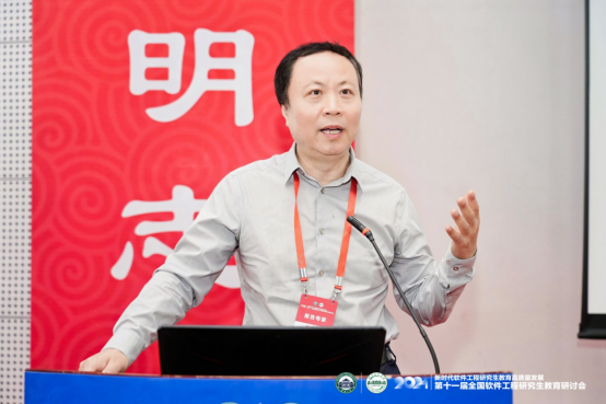 大会主题报告分别由大会副主席、武汉计算机软件工程学会理事长、武汉大学李兵教授,北京航空航天大学软件学院副院长谭火彬教授主持。浙江大学尹建伟教授以“以人促新、以新提质、以质扩量”为题分享了浙江大学软件学院在教育科技人才一体化实践探索上取得的成效和经验。东北大学朱志良教授详细解读了学位点评估与申报要求及注意事项。北京航空航天大学胡春明教授介绍了校企共同参与的关键软件领域卓越工程师核心课程体系建设情况和实践经验。北京大学李戈教授探讨了大模型对软件工程领域的影响,提出了基于AI的软件工程研究生实践教学改革建议;武汉大学程大钊教授分析了新形势下软件工程专业研究生培养面临的挑战、应对策略和实践举措及成效。