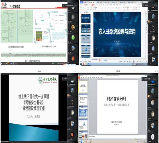 熊伟、徐德刚、杨建强、屈俊峰四位老师分别详细汇报了《面向对象程序设计(Java)》、《嵌入式系统原理与应用》、《网络安全基础》、《软件需求与分析》四门课程的建设举措和成效。