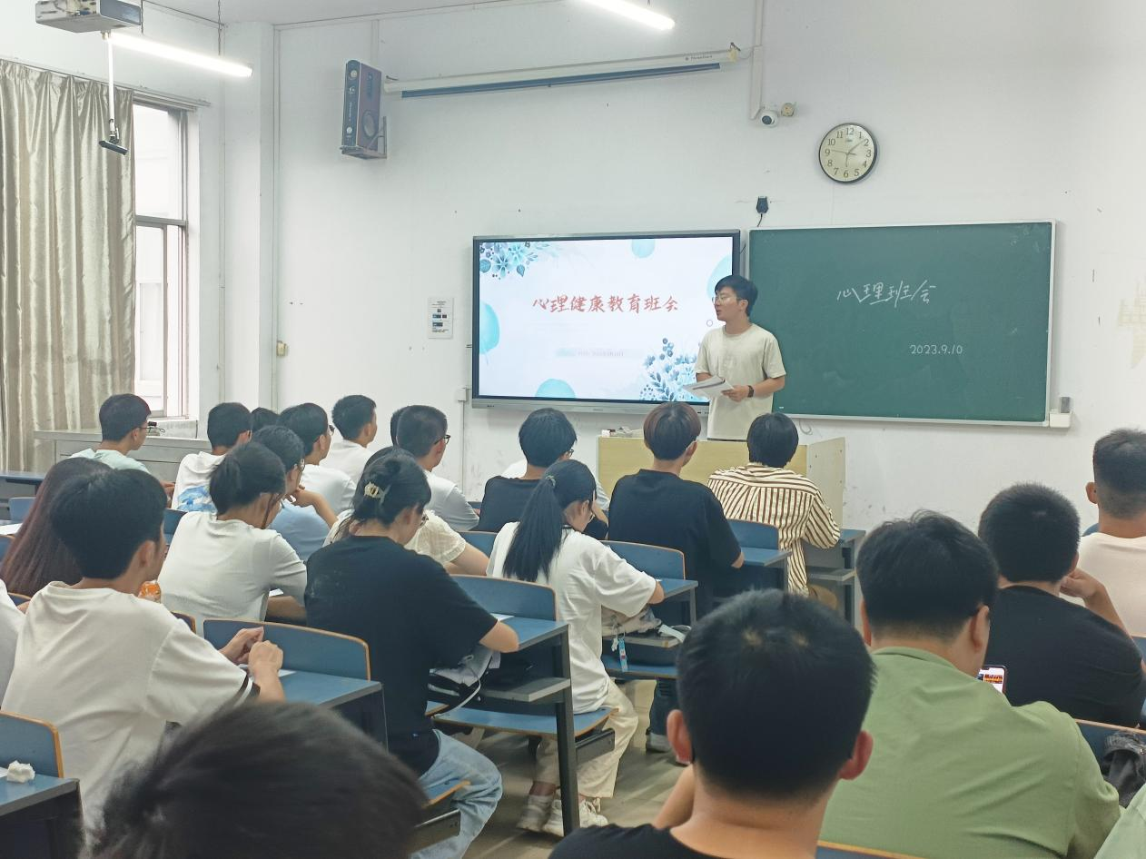 于9月10日组织2023级新生开展了心理健康教育主题班会,通过辅导员讲授、专家讲解、互动交流等形式,帮助大学生认识自己的心理需求,教会学生有效应对学业和生活压力。