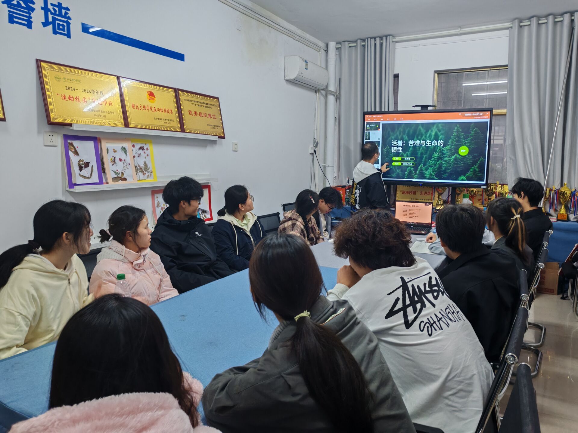 第四期读书交流会在15栋一站式学生社区顺利举行。本次活动以“品读经典·感悟人生”为主题,由余志强担任主讲人,聚焦余华的经典著作《活着》,通过深入的人物剖析与时代背景解读,引领学生们开启了一场对“活着”所蕴含的坚韧与力量的深度思索之旅。