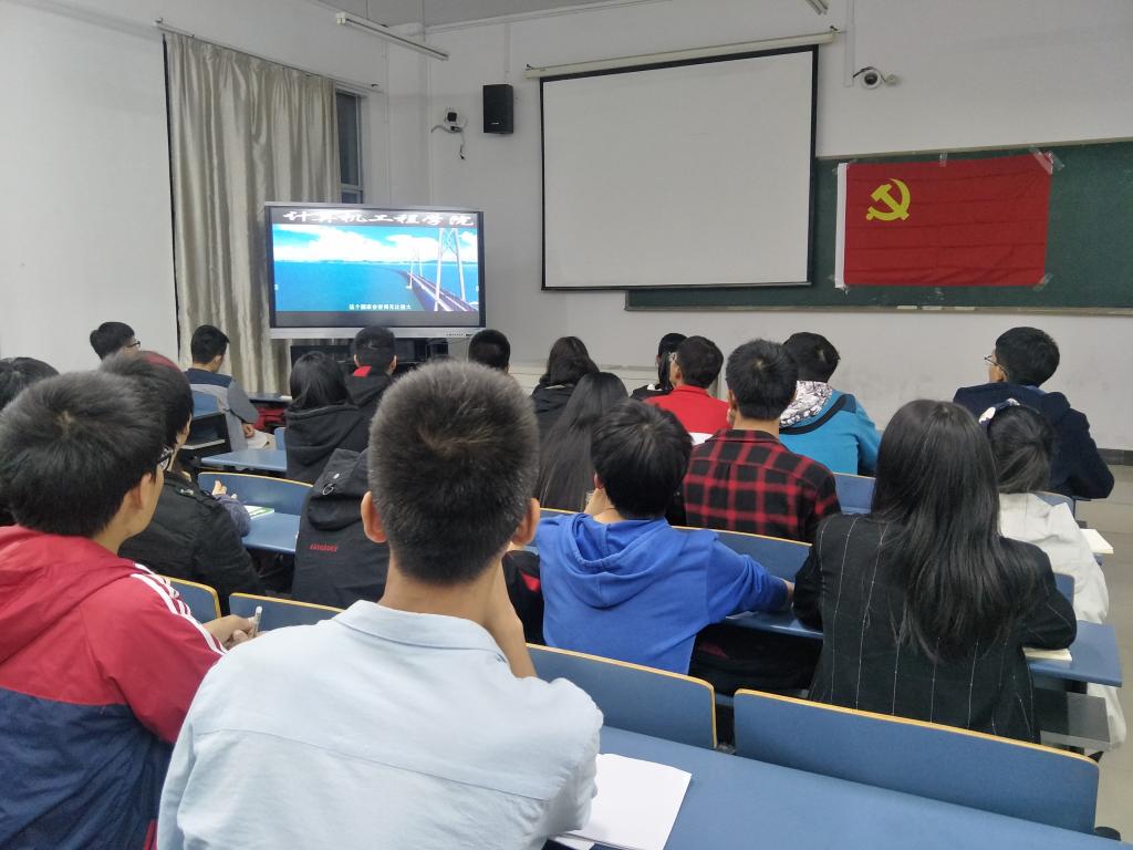 第二期入党积极分子培训班的学员们于11月1日,在北区进行视频课的学习,集中观看纪录片《厉害了-我的国》。