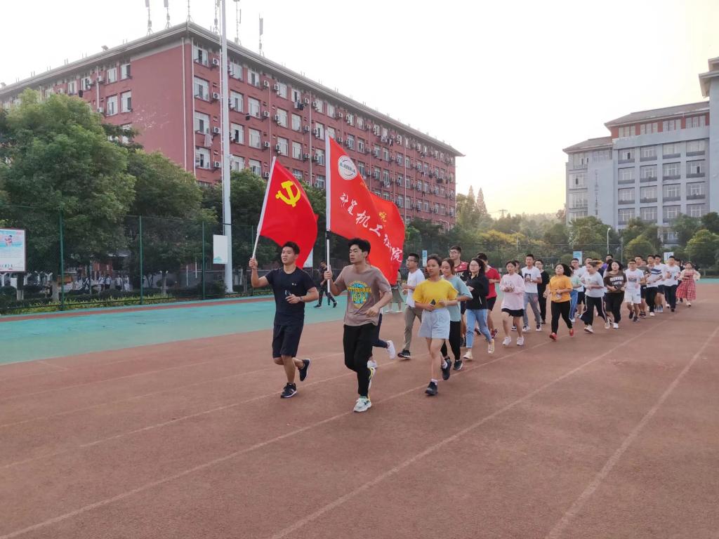 早上6点50分,参与晨跑的同学准时在操场上集合,整装待发。在学生党总支纪检部点名答到后,迎着清晨的第一缕阳光,大家迈着稳健的步伐向前跑起。象征着学生党支部充满活力和朝气的红色的党旗在队伍前迎风飘扬。整个晨跑方阵整齐有序,展现出了学生党支部的凝聚力和良好的精神面貌。