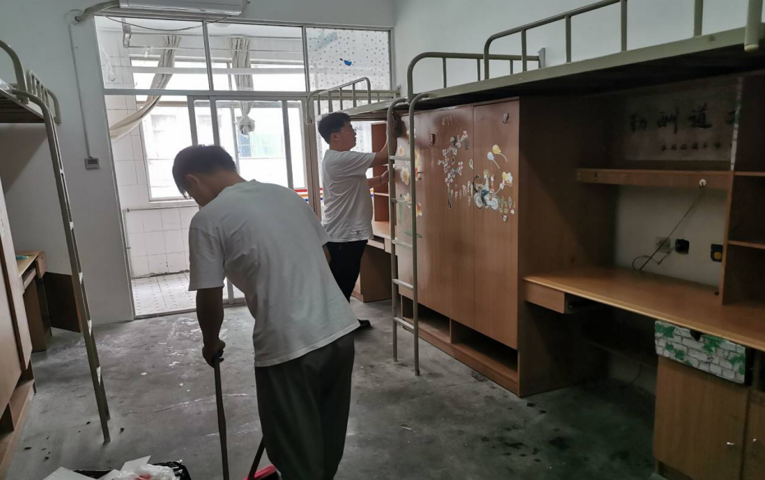 所有的学生党员认真地清扫着每一个墙角,细致地擦拭着每一处旮旯,他们还仔细查看了寝室的各种设施,好像即将入住的就是他们的弟弟妹妹一样。汗水淌下来,擦擦继续干;衣服汗湿了,用手当扇子扇一扇......没有一个人叫苦叫累。通过学生党员们的努力,新生们在入住时一定能够感受到来自学姐学长们浓浓的关爱和关心。