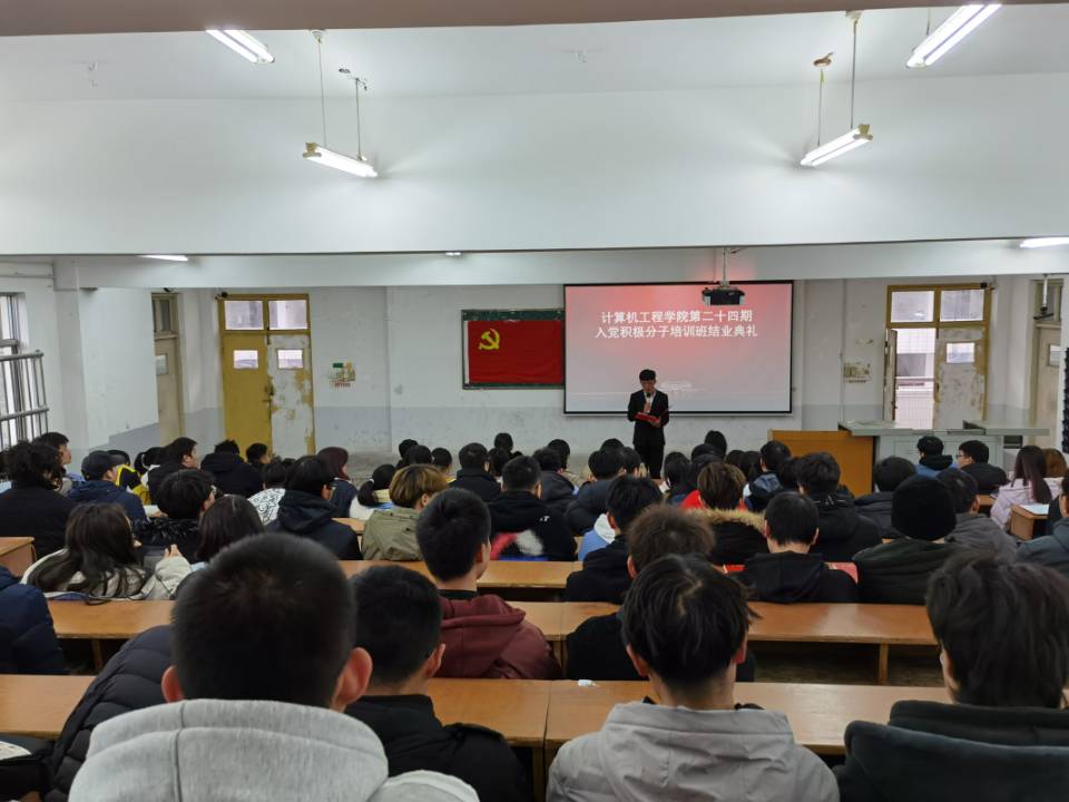 在北区6栋阶梯02教室举行第二十四期入党积极分子培训班结业典礼。学院党委书记曹德勇、党委副书记李小华、辅导员童晓芳、张闪,全体学生党员、第二十四期入党积极分子和学生党总支全体干事参加了结业典礼。典礼由余果主持。
