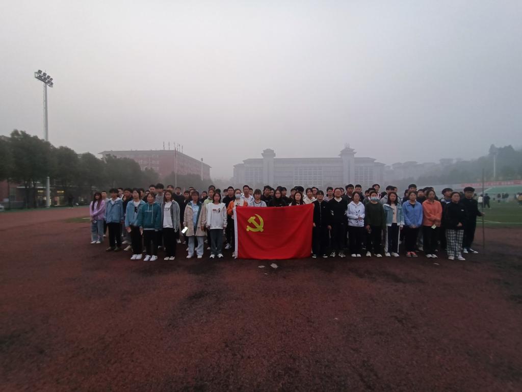 活动开始,全体人员整理队形,跟随党旗,迎着初升的朝阳进行晨跑。整齐的队伍、有力的脚步声、矫健的身姿和不断前进的身影,展现了计算机学子的朝气与活力。每个同学都用自己的行动、用自己的毅力诠释着新时代青年的热血。