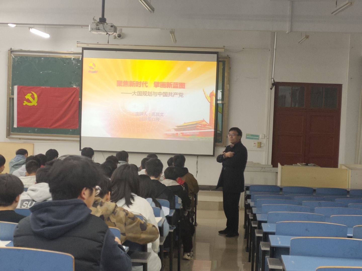 第二十六期入党积极分子培训班第五讲在北区8栋A506教室进行,本次课程以“聚焦新时代,擘画新蓝图”为主题,由学工处副处长高其文主讲。