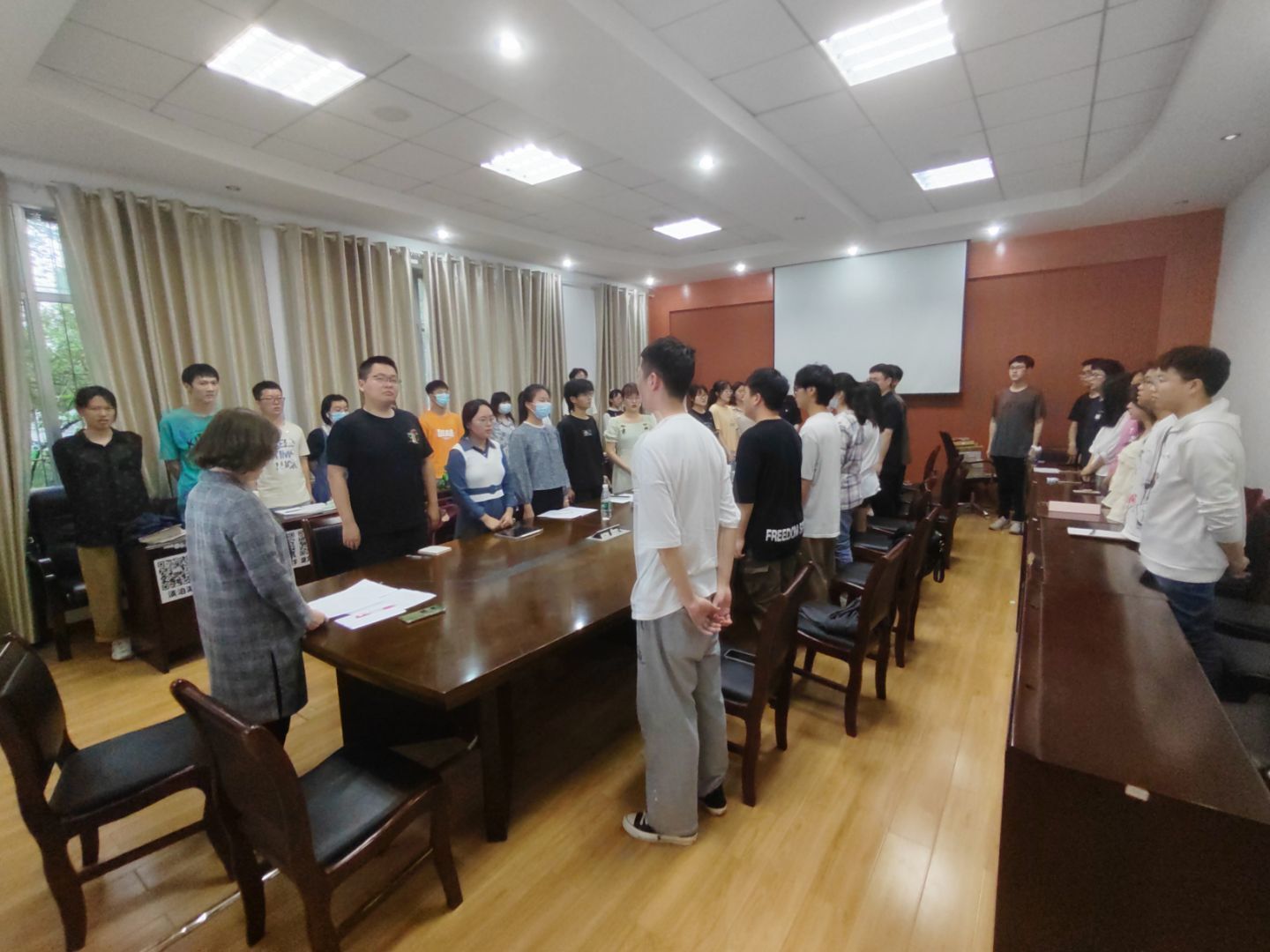 活动伊始,全体党员一起回顾初心,齐唱国歌、重温入党誓词。随后,在毛小娟的带领下学习了习近平总书记关于国家安全重要论述和《中共中央办公厅印发<关于推动党史学习教育常态化长效化的意见>》的主要内容。紧接着,李小华给学生党员们提出了一些建议:在日常生活中要对自己有更高的要求,要更加努力的学习党的理论知识,要迎难而上、不逃避困难,要充分发挥党员的带头模范作用。最后,结合文件内容,党员们针对“如何从自身建设好党支部”这个问题踊跃地交流意见。