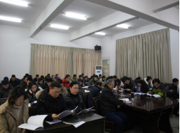 党政班子成员和全体教职工参加会议,学院党委副书记、工会主席李小华主持会议。