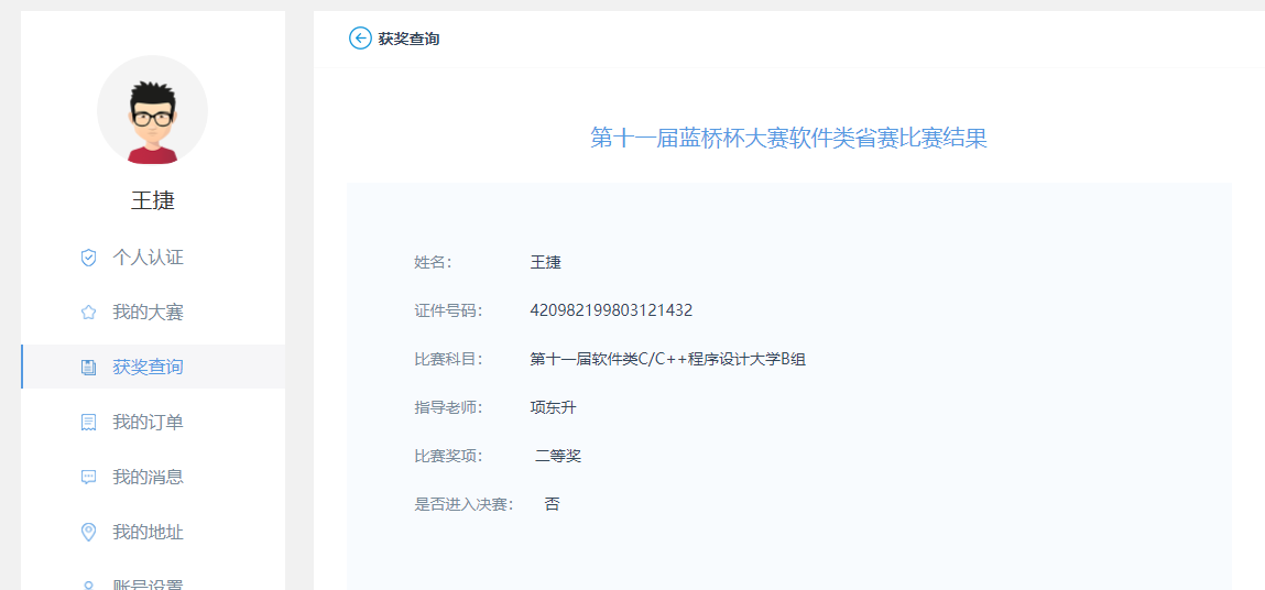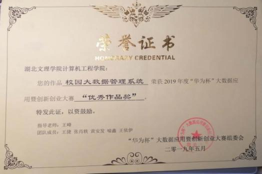 此后,他分别获得了蓝桥杯软件设计大赛(C/C++组)省二等奖,华为杯创新创业大赛优秀奖,全国大学生互联网+创新创业大赛校赛一等奖。他说:“通过学科竞赛不仅可以提升自己的实践动手能力,还可以锻炼自身的团结协作能力,这对我们以后的职业生涯都是不可多得的宝贵财富。”。