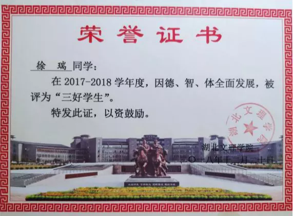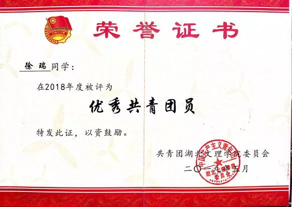 三好学生、优秀共青团员等称号。