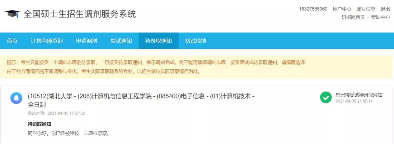 他坚信“我不怕千万人阻挡只怕自己投降”。正是这种坚持不懈顽强拼搏的精神,他在2021年硕士研究生考试中以初试410分、复试第的优异成绩,被湖北大学计算机与信息工程学院录取。